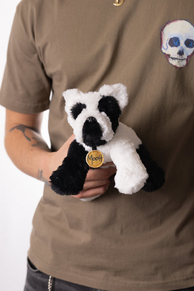 柔らかなぬいぐるみ「ミニ・ムー」は、ジョニーの愛犬ピットブル・ボクサーテリアを可愛らしく再現。彼は同じ名の絵画でムーを永遠に残し、太陽の光に照らされた荘厳なポピーの野原でくつろぐ姿を展示会の中心モチーフにしました。