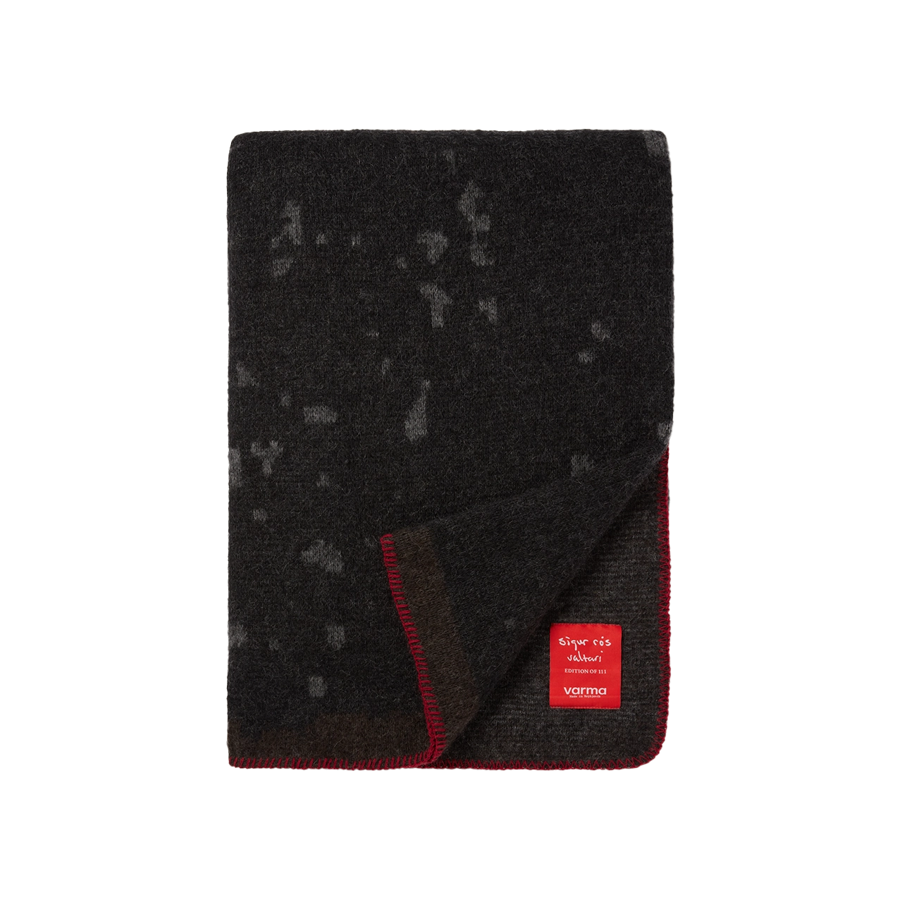 ヴァルマ社製 100% アイスランドウールブランケット。サイズ130cm×190cm。グレーのウール地に赤い縁取りでヴァルタリ号が描かれています。